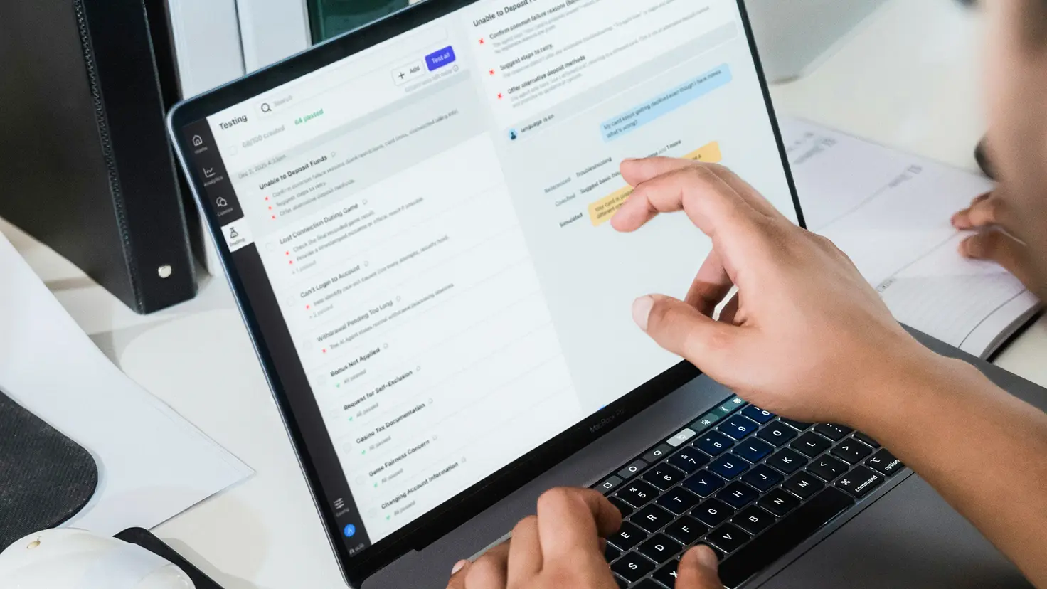 Structured testing means defining critical customer scenarios in advance—like refund eligibility, delivery updates, policy explanations, or compliance-sensitive responses—and clearly outlining what “good” looks like.